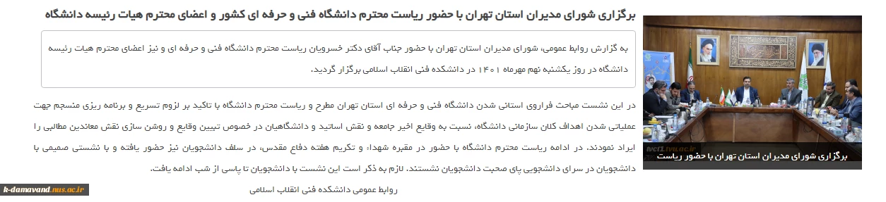 امتیاز دهید : برگزاری شورای مدیران استان تهران با حضور ریاست محترم دانشگاه فنی و حرفه ای کشور و اعضای محترم هیات رئیسه دانشگاه 2 دوشنبه 11 مهر 1401 ساعت 11:42